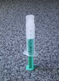 Wenn das Wasser gefroren ist, erwärmt man die Spritze leicht mit der Hand, drückt das Eis zentimeterweise aus der Spritze und kann ohne kalte Finger die kranke Stelle massieren.